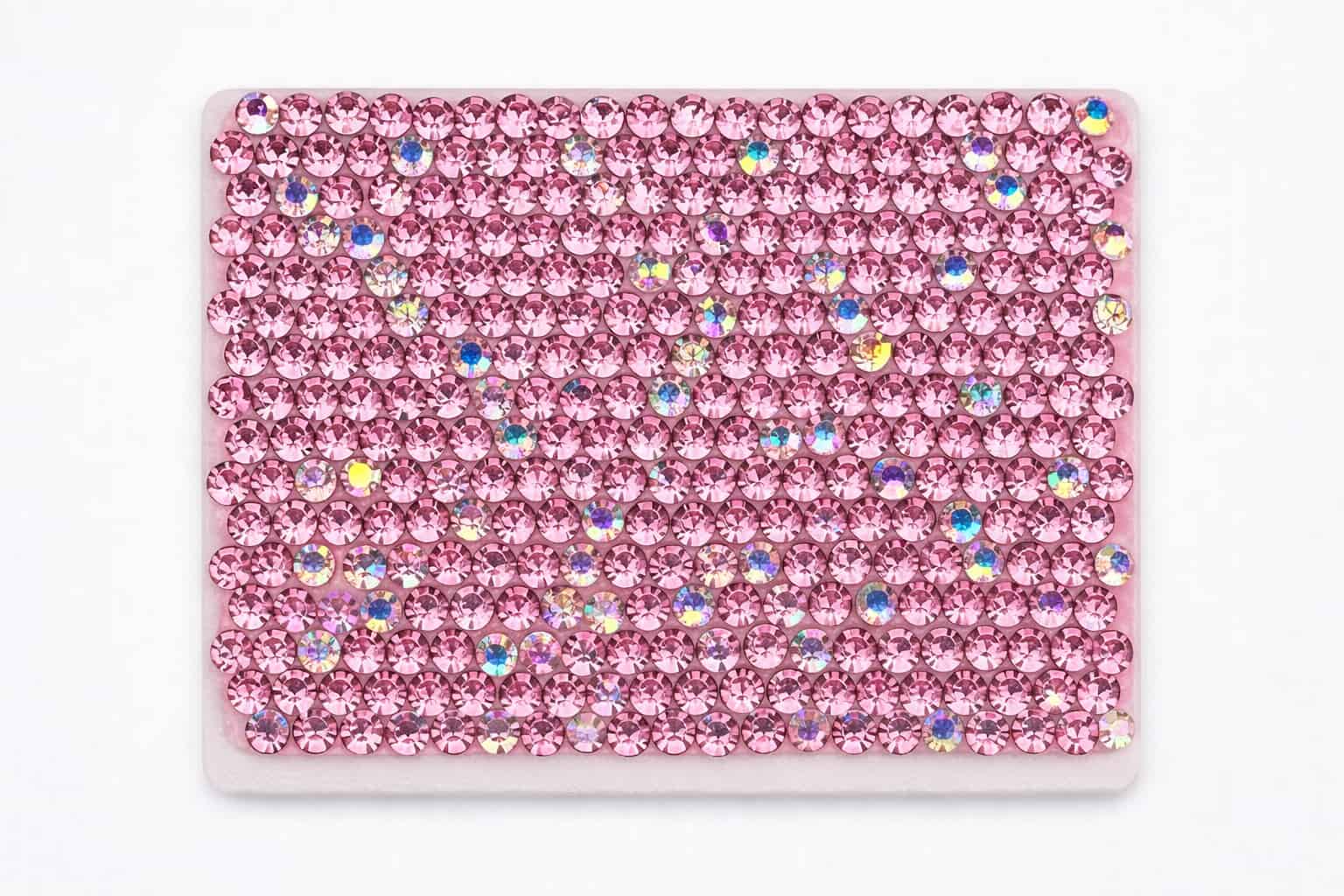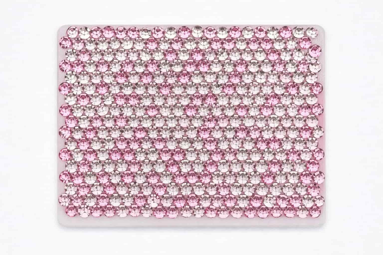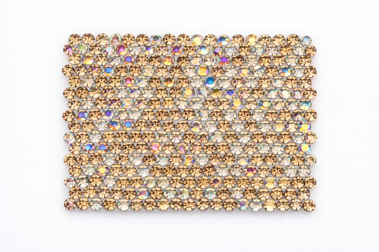 The samples below showcase a range of rhinestone colors and mixed patterns we have previously manufactured. Color references, custom mixes, or new pattern requests can be developed based on your design needs and order volume.