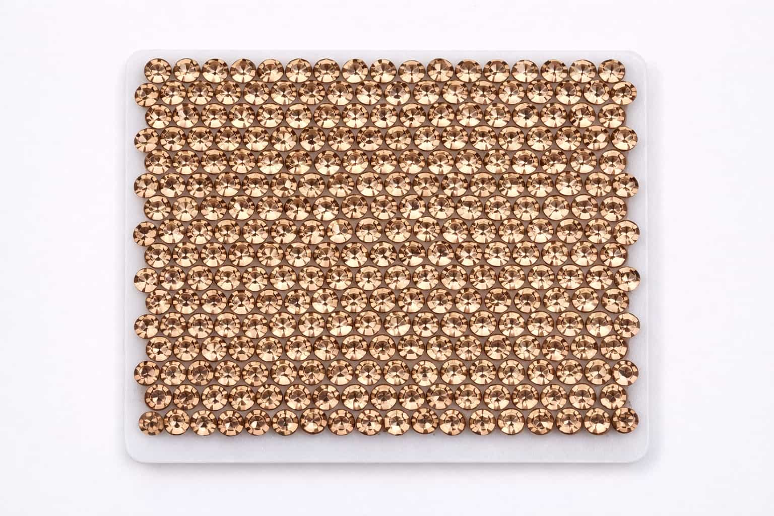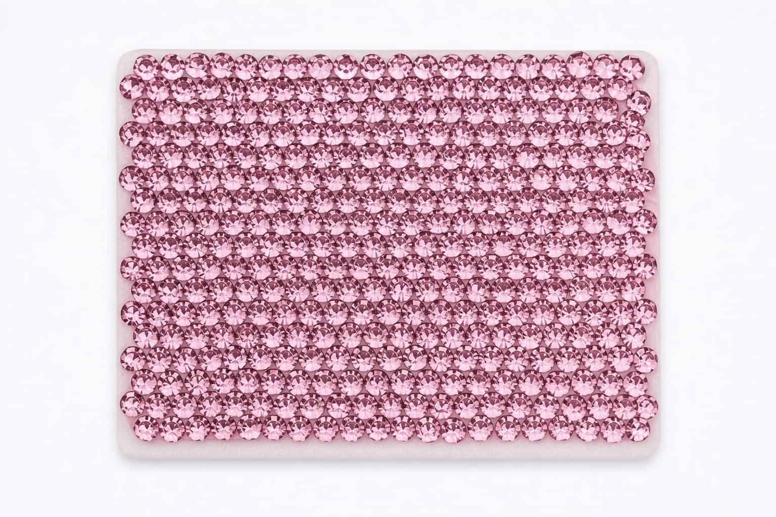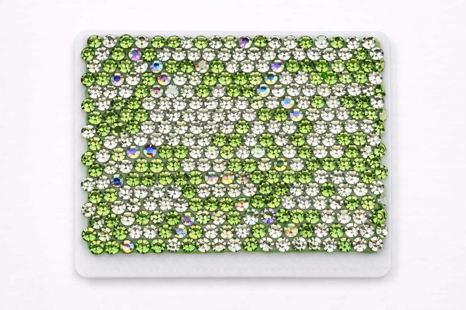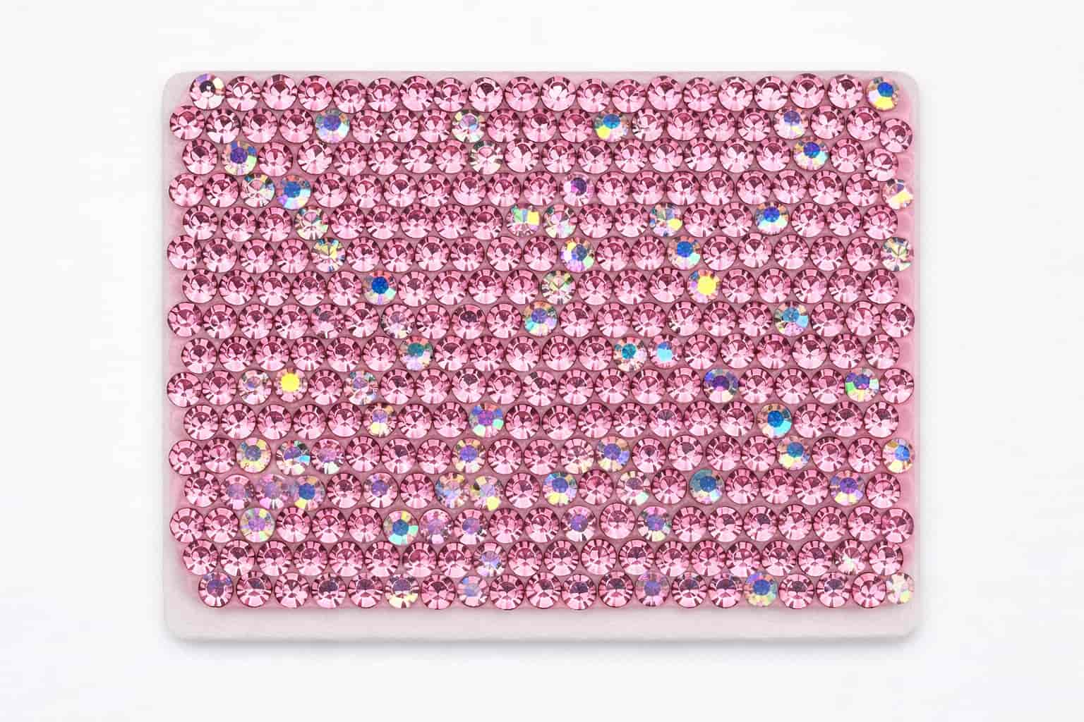 The samples below showcase a range of rhinestone colors and mixed patterns we have previously manufactured. Color references, custom mixes, or new pattern requests can be developed based on your design needs and order volume.